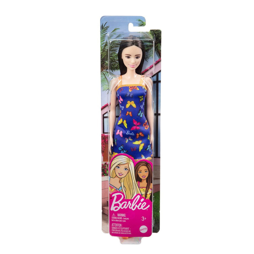 These beautiful Barbie dolls wear dresses featuring a colorful butterfly and Barbie logo print pattern in fun color variations -- a pair of strappy heels adds another trendy touch. Choose from a variety of different dolls and dress colors with these 11.5 inch dolls. Kids can tell all kinds of stories with these versatile looks because when a girl plays with Barbie, she imagines everything she can become! Each sold separately, subject to availability. Colors and decorations may vary. Makes a great gift for kids 3 years old and up.