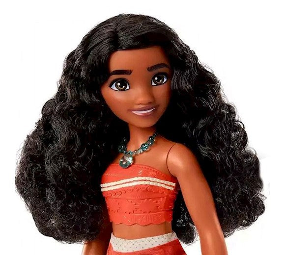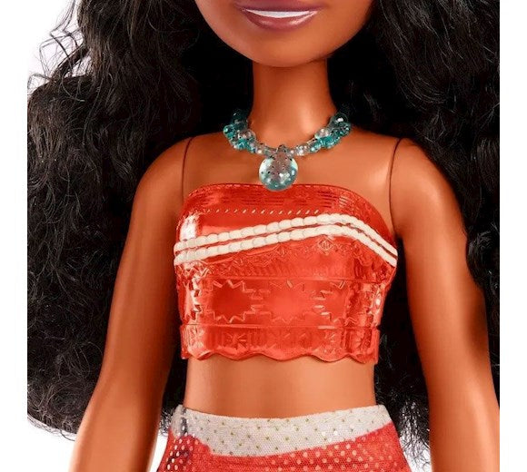 Posable Vaiana fashion doll wears a fun look in her signature colors and includes a removable necklace.