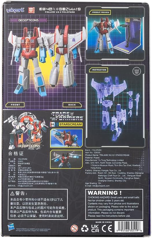 Unleash the power of the Decepticons with this Transformers Starscream 19cm Advanced Model Kit! Crafted with precision and officially licensed by Hasbro, this model brings the classic G1 Starscream to life with stunning detail and articulation. Whether you're a lifelong Transformers fan or a model enthusiast, this collectible figure delivers nostalgia, display value, and hands-on fun. Easy to assemble and display-ready, Starscream is the perfect villain to add to your Transformers collection.