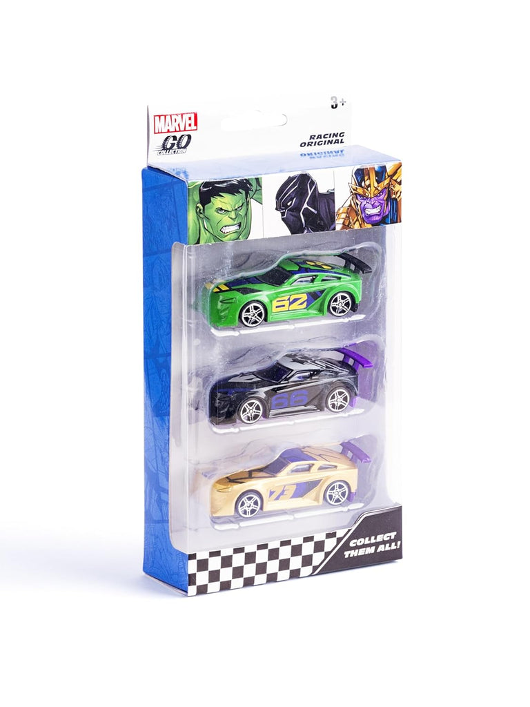 Product Includes - 3 Diecast Vehicle inspired by key Marvel characters - including Marvel's Hulk, Black Panther and Thanos