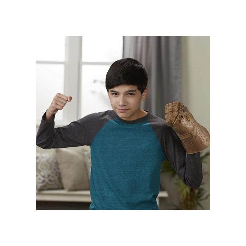 Kids can imagine summoning the power of the Infinity Stones and controlling the fate of the galaxy with the Infinity Gauntlet Electronic Fist, including lights and sounds! Push the center button on the fist to light up the center stone and to activate mighty sound FX! The Infinity Gauntlet Electronic Fist is inspired by the Avengers: Infinity War movie and is designed to fit most kid hand sizes.