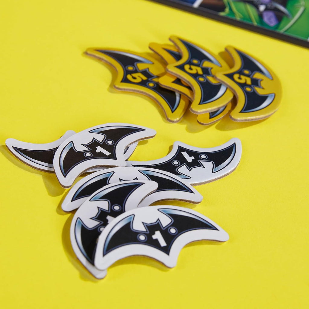 • COLLECT BATARANGS: Instead of Monopoly money, players pay with batarangs. The more villains a player captures, the more batarangs they can collect from other players. The one with the most batarangs wins