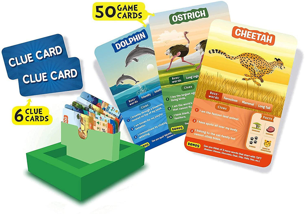 • EXCITING GAME OF QUESTIONS - Ask up to 10 questions to guess the animal on the Game Card! Think, ask intelligent questions, use your clue cards wisely, and be the first player to win 7 Game Cards!